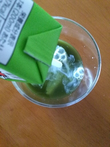 さて、スジャータめいらくの青汁(砂糖不使用)にキッコーマンの調整豆乳を混ぜて飲んだ感想としては、飲みやすくて美味しいの一言です。